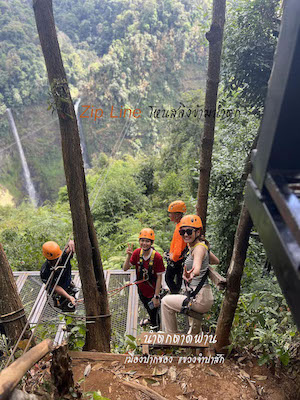 13.00 น. นำคณะเข้าชม “น้ำตกตาดฟาน” ชมความงามของน้ำตกคู่แฝดที่ไหลมาจาก ภูเขาเทวดา 2 แห่ง ตกมารวมกันในแอ่ง ซึ่งน้ำตกมีความสูงถึง 120 เมตร ในน้ำตกมีกิจกรรม adventure สุดท้าทาย พบกับการโหนสลิง Zip-Line 4 เส้น (ค่าใช้จ่ายส่วนนี้ไม่ได้อยู่ในแพคเก็จทัวร์)