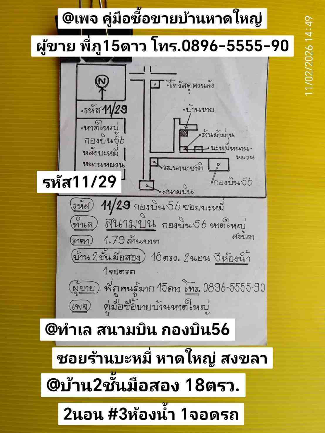 บ้าน2ชั้นมือสอง กองบิน56 หาดใหญ่ สงขลา