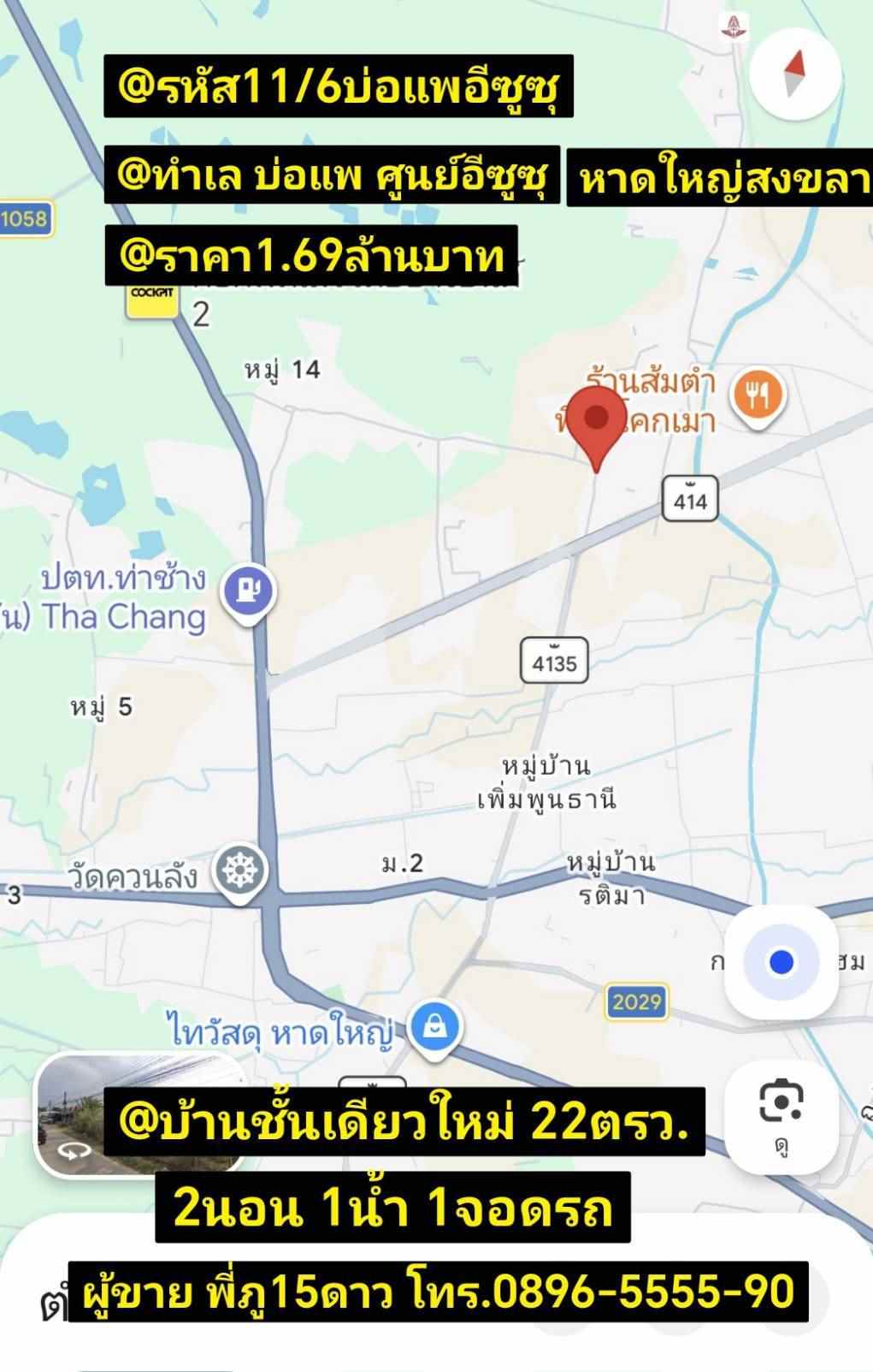 [ต้องการขาย] บ้านชั้นเดียวใหม่ มี4หลัง ศูนย์อีซูซุลพบุรีราเมศวร์ หาดใหญ่ สงขลา |