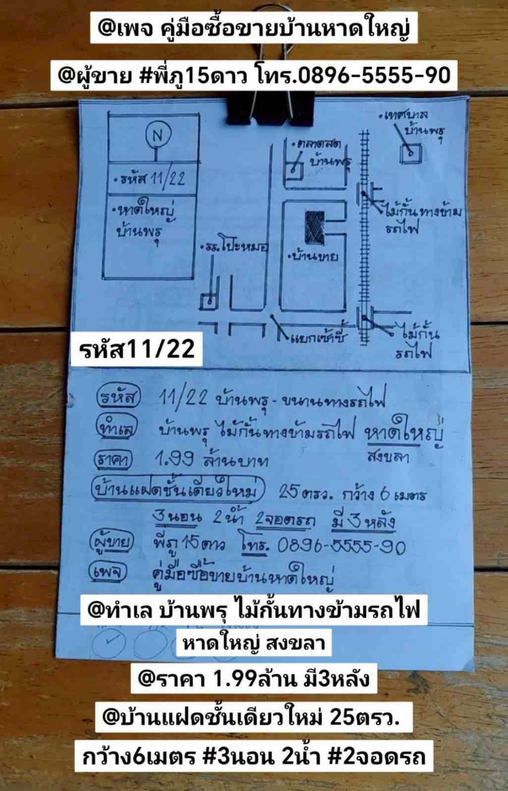 บ้านแฝดชั้นเดียวใหม่ มี3หลัง บ้านพรุ ไม้กั้นทางข้ามรถไฟ หาดใหญ่ สงขลา